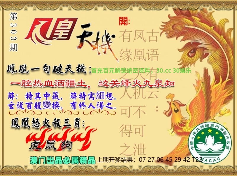 307期:澳门凤凰网【稳杀半头(伏鼓洪炉)